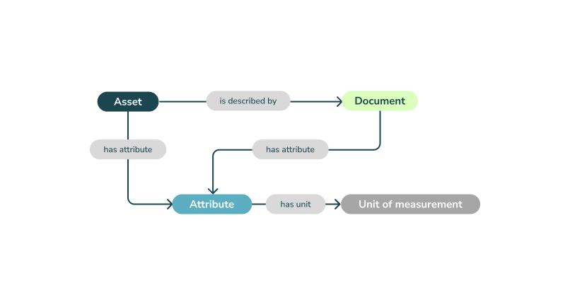 It may be tempting to design a complex model, but the smarter strategy is to keep it simple. Because semantic models are flexible and scalable, you can expand them step by step as new needs arise. For example, a simple model might begin with just assets and attributes, and only later include supporting documents or additional layers of detail.